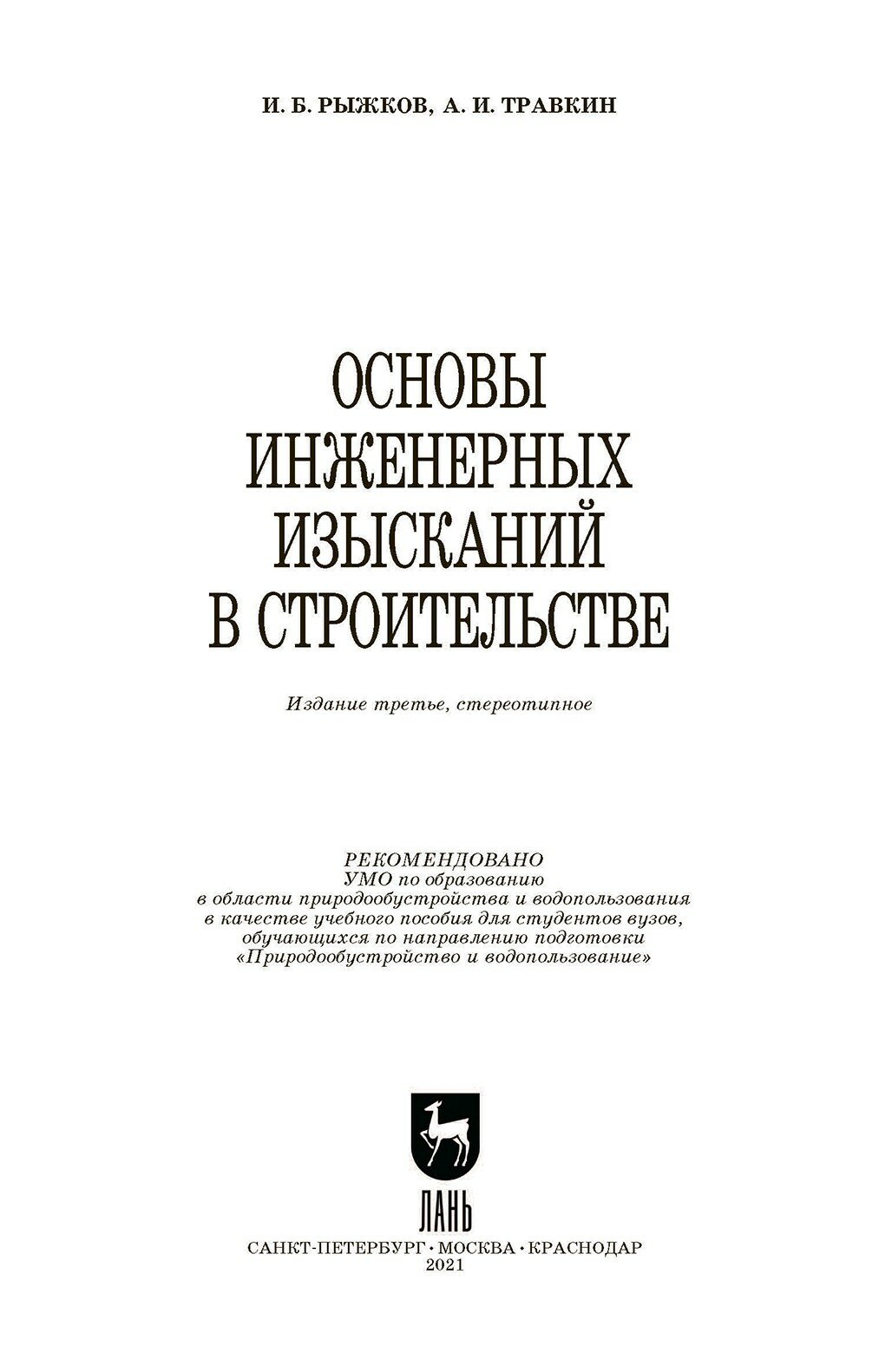 Основы инженерных изысканий в строительстве (И. Б. Рыжков); Издательство ЛАНЬ, 2024