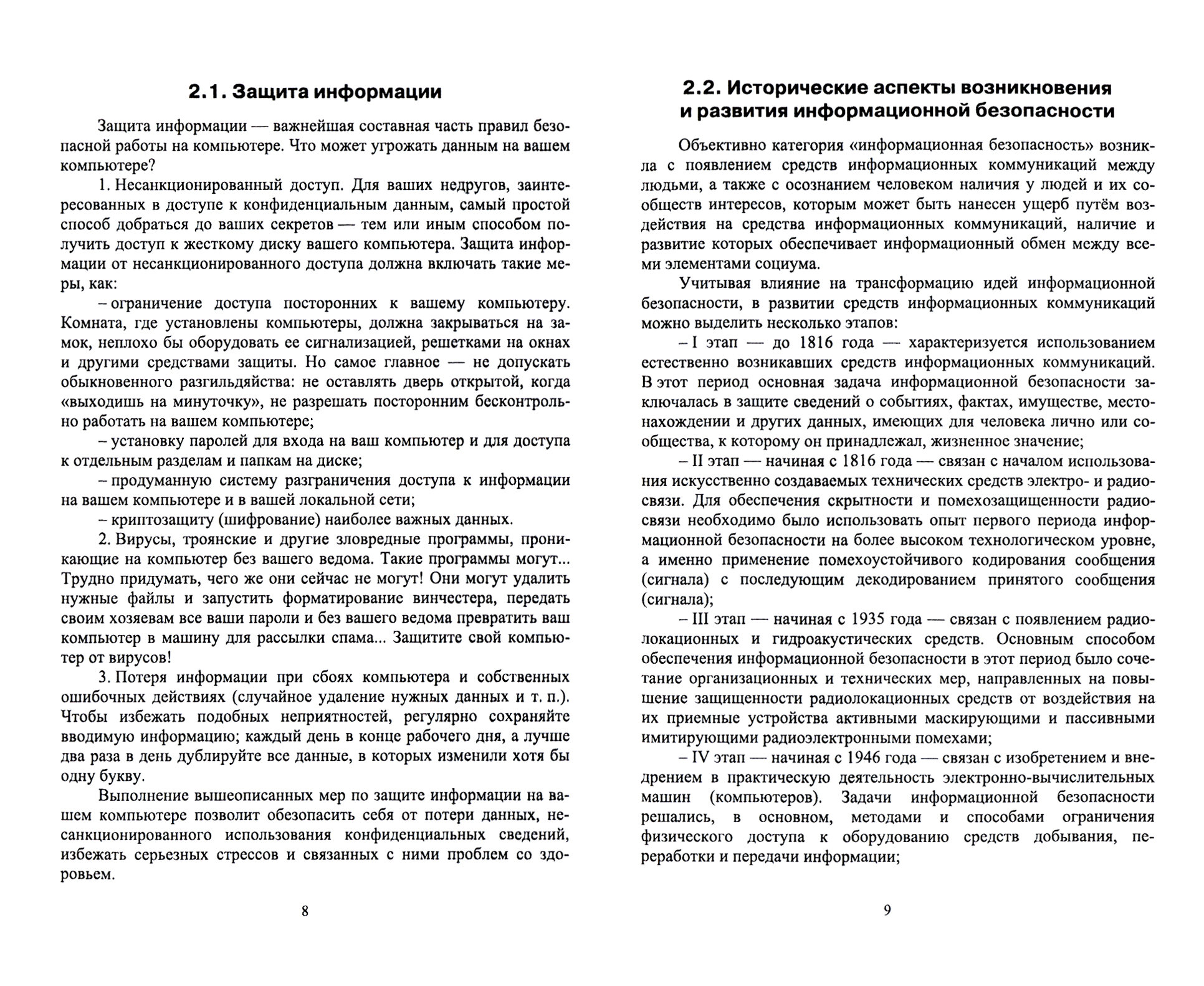 Учебное пособие предназначено для всех пользователей, стремящихся обеспечить защиту своей информации. Рассматриваются вопросы использования антивирусных программ Comodo Internet Security, Dr.Web CureIt, AVZ и другие. Рекомендуется студентам, обучающимся по образовательной программе среднего профессионального образования по специальностям, входящим в укрупненные группы специальностей среднего профессионального образования «Информатика и вычислительная техника» и «Информационная безопасность».
