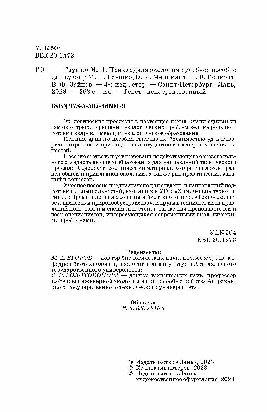 Книга: Прикладная экология (Грушко Мария Павловна, Волкова Ирина Владимировна, Мелякина Эльвира Ивановна); Лань, 2021