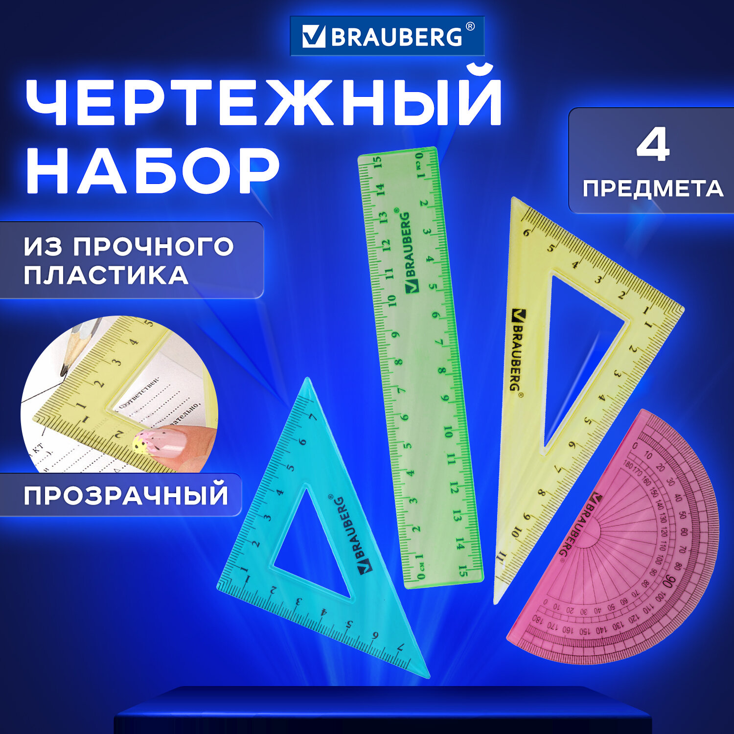 Набор чертежный Brauberg Crystal малый