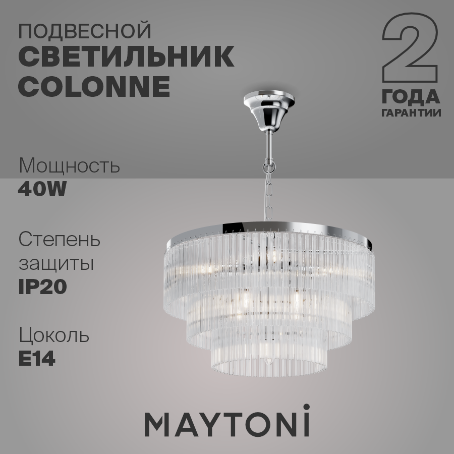 Подвесная люстра Colonne MOD093PL-09BS - продукт известной компании Maytoni (Германия). Имеет максимальную мощность 360 Вт, освещает площадь до 18 кв. м. Отлично подойдет для таких мест, как гостиная, холл, спальня, кухня, кабинет. Впишется в интерьеры следующих стилей: модерн.