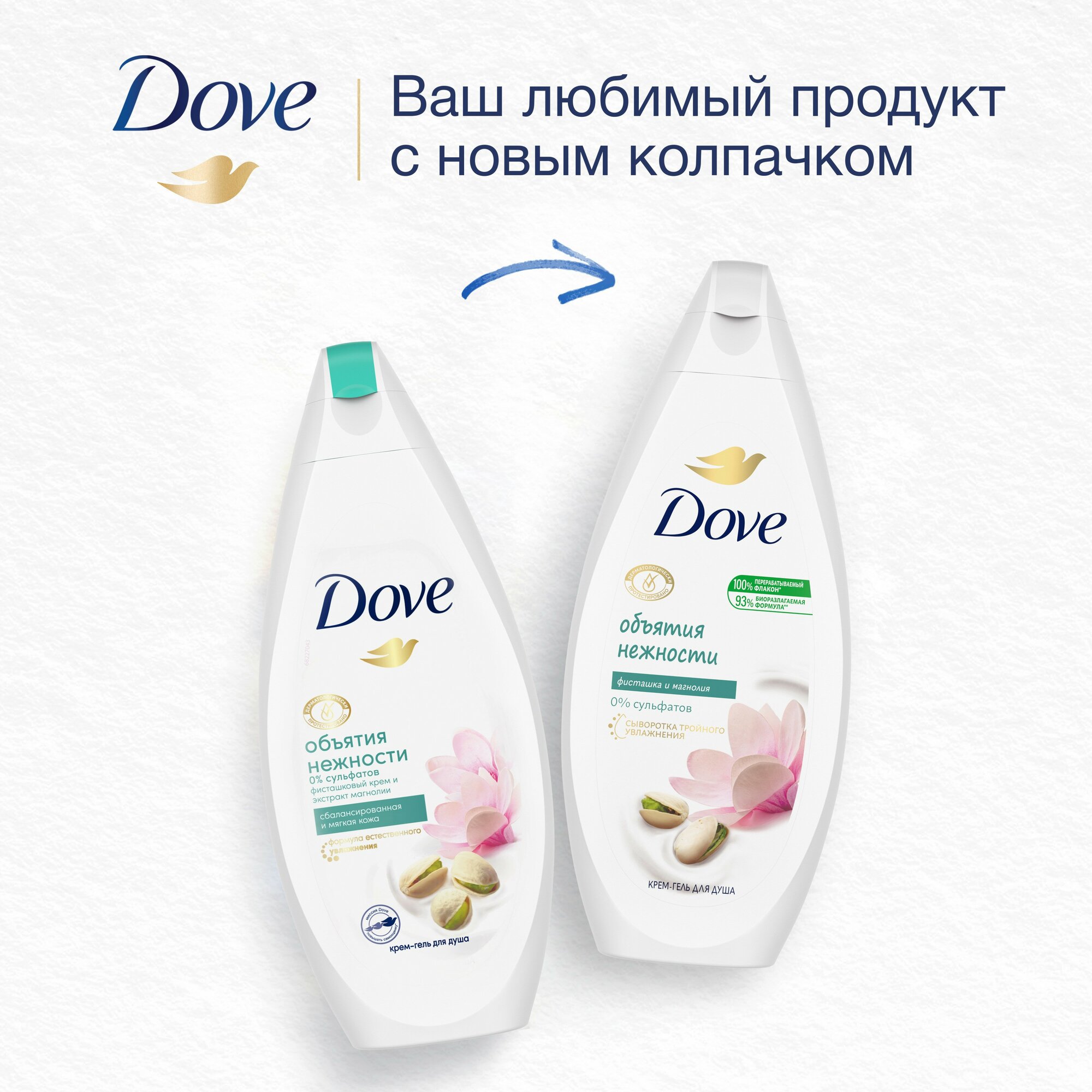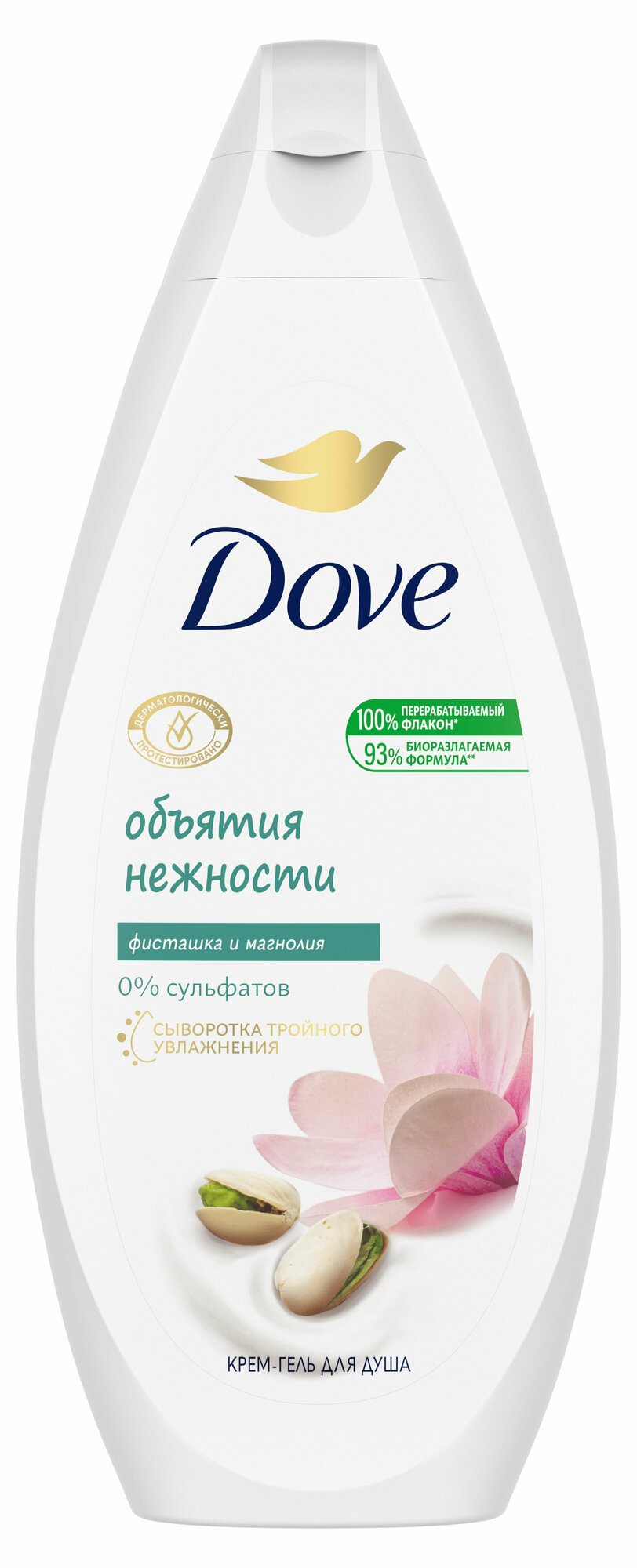 Все мы знаем, как важно в ежедневной суете уделять время для заботы о себе. Почему бы не насладиться несколькими минутами ухода за собой с Крем-гелем для душа Dove? Подобрав подходящее очищающее средство для кожи, можно создать атмосферу SPA в домашних условиях и в то же время обеспечить своей коже интенсивное питание. Мы создали Крем-гель для душа Dove Фисташковый крем и магнолия для того, чтобы подарить Вашей коже необходимую заботу и питание, а Вам - несколько моментов наслаждения каждый день. Крем-гель для душа Dove Объятия нежности c технологией NutriumMoisture содержит ультраделикатные очищающие компоненты. Нежная формула помогает коже поддерживать естественный водный баланс во время принятия душа, а также смягчает и разглаживает кожу. Изысканный аромат фисташкового крема и магнолии помогут Вам расслабиться и получить истинное удовольствие.