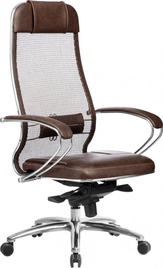 Материал обивки: сетка. Цвет товара: черный. Крестовина: хромированный металл . Максимальная нагрузка, кг: 120. Кресло руководителя METTA SAMURAI SL-1.03 армированная ткань-сетка, Черный Плюс. Эргономичное кресло SAMURAI необходимо для улучшения качества жизни! Великолепный дизайн, устремленный в будущее. Супер эргономичность, непревзойденный комфорт. Исключительное удобство персональных настроек. Абсолютно эргономичная форма спинки строго соответствует анатомической форме тела человека. Двухзонная регулировка подпора поясницы позволяет создать идеальную поддержку поясницы под любое пожелание любого человека (по росту и комплекции). Комфортное сиденье с двухзонной регулировкой жесткости позволяет достичь максимального удобства (можно сделать мягче или жестче), а также подстраивать угол наклона сиденья по необходимости за счет разного натяжения передней и задней зоны. Сверхпрочный стальной каркас покрыт зеркальным хромом. Синхромеханизм MULTIBLOCK благодаря раздельному качанию сиденья и спинки позволяет телу периодически разгибаться, что улучшает кровоток и разминает мышцы спины. Смещенный центр качания вперед позволяет ногам оставаться на полу при отклонении кресла и исключает сдавливание сосудов ног. Возможность фиксации различных положений наклона. Газ-лифт 4-го класса. Пятилучье зеркальное литое с полиуретановыми роликами. Полиуретановые ролики – прочные, долговечные и бесшумные, не оставляют следов и царапин на полу, увеличенного диаметра. Сетчатая ткань, армированная высокопрочным арамидным волокном, позволяет Вашему телу свободно «дышать», сохраняя температурный баланс, исключая любые зоны перегрева.