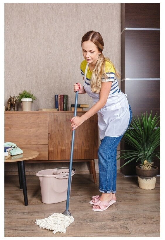 Моп Svip Классика Миди предназначен для влажной уборки помещений. Обеспечивает бережное мытье, поэтому подходит для любых напольных покрытий. Состоит из толстого пучка эластичных веревочек, которые впитывают большой объем воды.