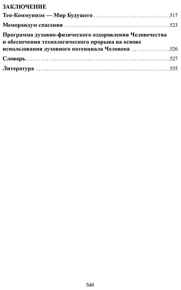 Важнейшей составляющей дальнейшего Существования и Развития является создание нового единого для всего Человечества Мировоззрения, гармонично сочетающего Научное и Духовное Знание. Этому вопросу посвящена значительная часть книги.