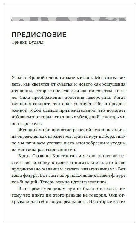 Книгу купила из-за обложки. Мне было не важно содержание. Я как раз была озабочена имитацией леопардовых пятнышек на ткани в виде аппликации, но никак не могла удовлетвориться результатом.Получив, книгу, занялась перерисовкой пятен и за одно- почитала. Порадовало, что автор развила тему леопардового принята, а что касается остальных советов…ну они тоже на слуху: примете себя такой как есть, думайте о своём удобстве и ощущениях, как Вам комфортно или не комфортно в этой одежде. Прочитать и принять к сведению можно.Половину книги осилила быстро, потом стало скучновато.