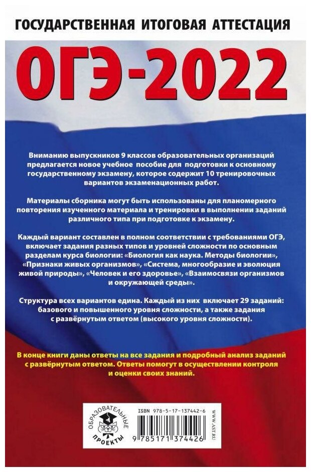 ОГЭ-2022. Биология (60x90/16). 10 тренировочных вариантов экзаменационных работ для подготовки к основному государственному экзамену (Лернер Г., Ковшикова О.); АСТ, Образовательные проекты, 2021