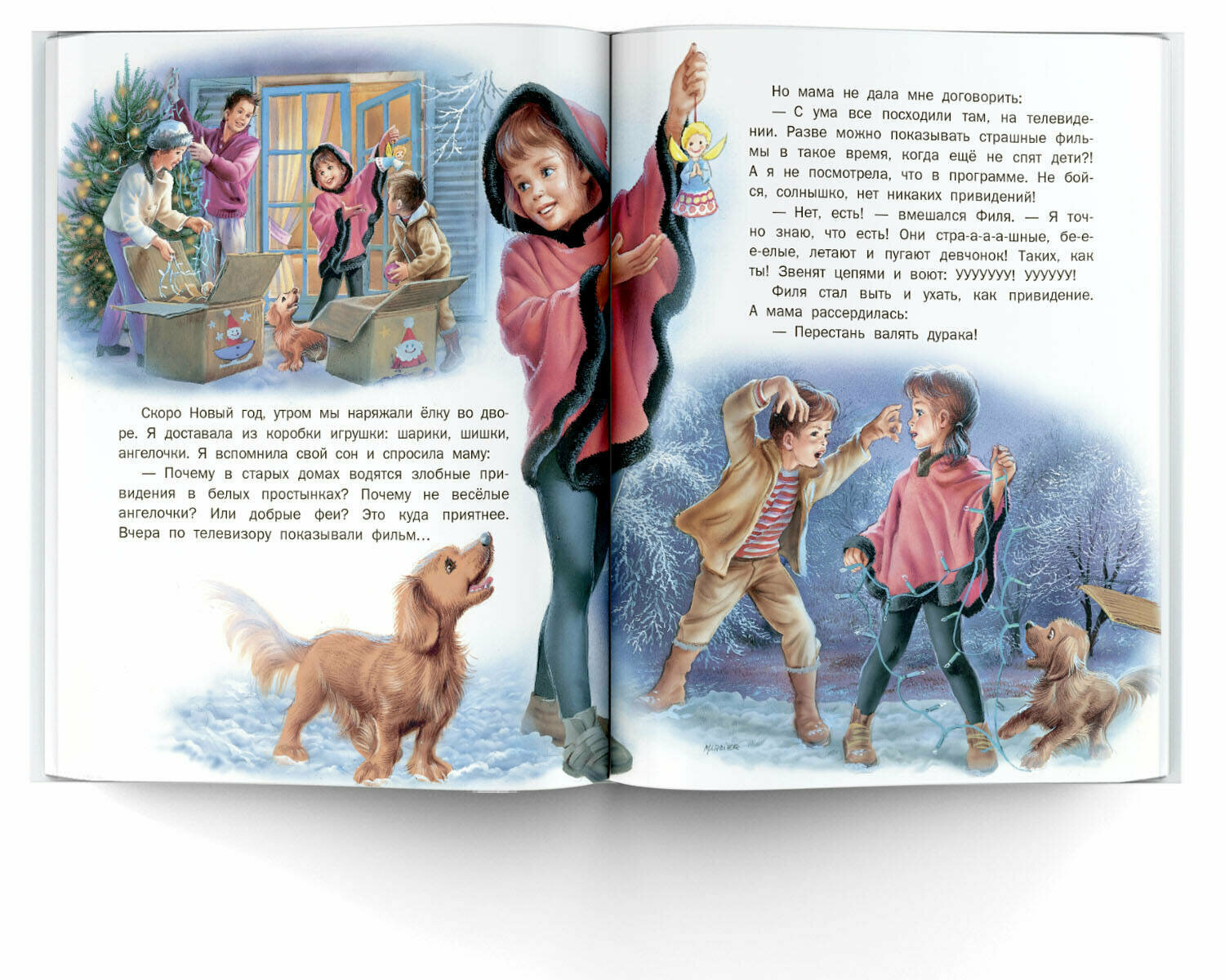 Мне безумно нравится оформление и иллюстрации, покупаю только по этой причине. Иллюстрации очень красивые во всех книгах. Обычно они нежные, романтичные, в этой книге, конечно, попытались создать интригу, присутствуют темные, мрачные картинки. Но в целом стиль иллюстраций тот же. Я ценю их еще и за то, что часто на них изображена вся семья. Это мои самые любимые страницы в каждой книге.