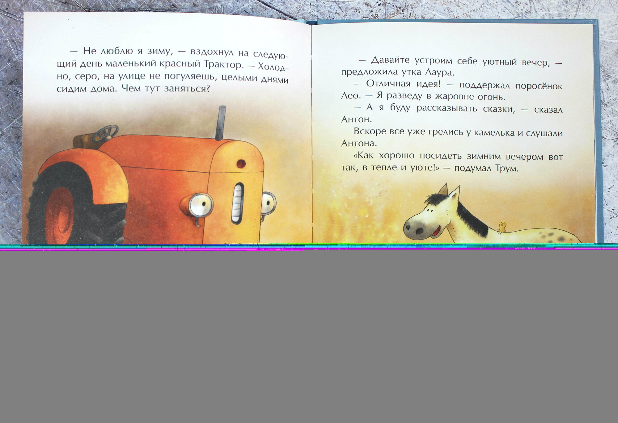 Мой двухлетний сын - фанат тракторов, поэтому в нашей домашней библиотеке оказались истории про Красный Трактор.
