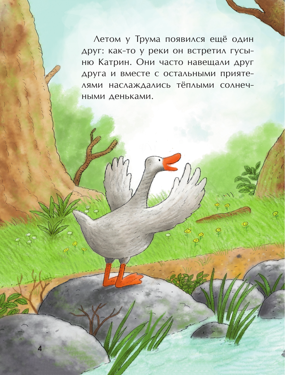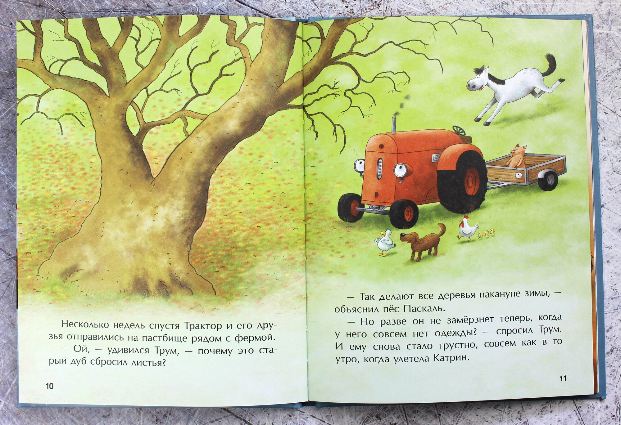 Каждый разворот книги - это иллюстрация с 5-7 строчками текста. Текст простой и понятный, иллюстрации красочные и передают эмоции героев.