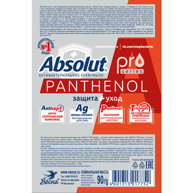 Сервис сравнения цен СкидкаГИД предлагает сравнить цены на товар «Мыло Absolut Pro Серебро + Пантенол 90г»