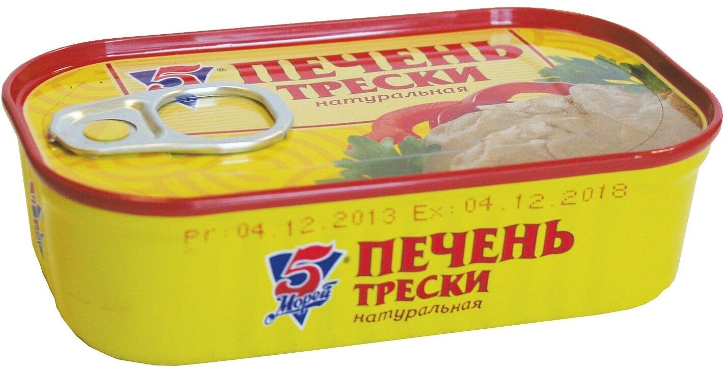 Печень трески 5 Морей атлантическая натуральная 120г печень трески натур