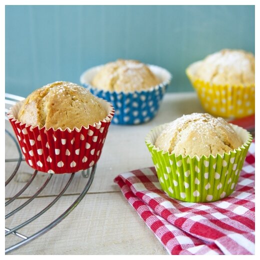 Чтобы ваши мини-кексы и маффины идеально выпекались, «С. Пудовъ» создал специальные формы для выпечки. Они сделаны из специального картона с антипригарным покрытием, который не теряет форму во время выпечки и не нуждается в дополнительных поддерживающих формах.Яркие, нарядные цветные формы красного, желтого, зеленого и голубого цветов идеально подходят как для выпечки, так и подачи готовых десертов.Идеальный выбор для создания порционных десертов.Влагожиронепроницаемый картон со специальным антипригарным покрытием.Сохраняет форму в процессе приготовления.Также подходит для формованных изделий таких как: муссы, желе, шоколад.С наружной стороны формы нанесена цветная печать, выполненная химически очищенной краской совместимой с пищевыми продуктами.Краска устойчива к воздействию высоких температур.Материал: специальный влагожиронепроницаемый картон с антипригарным покрытием. Прекрасно держат форму без использования специальных удерживающих лотков для выпекания.При производстве используется экологически чистая бумага высокой плотности.Количество: 24шт в упаковке.Цвета: красный, желтый, зеленый, голубой.Размеры: высота 4см, нижний диаметр 5см, верхний диаметр 7,5см.Можно использовать в микроволновой печи, в духовом шкафу, морозильной камере.Температурный режим: от -18С до +220С.Срок годности: не ограничен при соблюдении условий хранения.Условия хранения: хранить в темном месте при температуре от +16С˚ до+25С˚ и влажности не более 70%.
