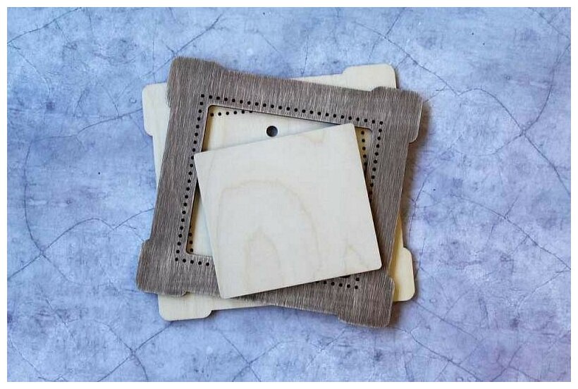 Рамка коричневая квадрат малая 16х17/10х11 Щепка ОР-263 Состав: три детали (фанера 4 см): деталь А (основание рамки), деталь В (основа для вышивки) и деталь С (верхняя накладная рамка).