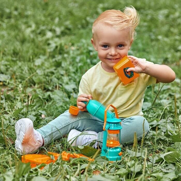 Игровой набор Туриста идеальный выбор для игры в походы и пикники. Его можно использовать круглый год: летом для игр на природе, а в другое время для игр в детской комнате. Теперь у маленького путешественника будут свои собственные туристические предметы. • Рекомендуется для мальчиков и девочек от 3 лет.• Все самое нужное для пикника и туристического похода в одном наборе.• Все предметы набора функциональные, максимально повторяют реальные предметы.• Лампа работает от 2-х батареек АА (в комплект не входят).• Бинокль удобно использовать при обзоре местности.• Мультиприбор (свисток, фонарик, компас) работает в от батареек AG3.• Игрушка изготовлена из прочного и безопасного пластика, устойчивого к механическому воздействию.• Туристический набор выполнен в классических цветах, что понравиться юному туристу.• Все предметы функциональные: в свисток можно свистеть, фонарик светит, компас показывает направление, бинокль увеличивает, в аптечку можно положит различные предметы, а лопаткой можно выкопать ямку.• Игра с набором способствует развитию навыков в сюжетно-ролевой игре, стимулирует зрительно-моторную координацию, развивает логику.• Большой набор идеально подходит как для самостоятельной игры ребенка, так и игры с друзьями. • Комплектация: лампа, аптечка, бинокль, лопатка, мультиприбор (свисток, фонарик, компас).