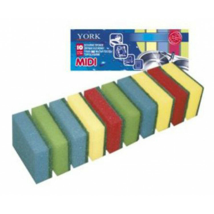 Губка York Midi Centi поролон (упак.:10шт) ассорти (3016)