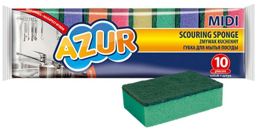 Губки AZUR 10 шт. 030160 предназначена для мытья различных видов посуды.Поверхность губки состоит из двух типов волокон: мягкого и грубого. Мягкое волокно хорошо справляется с обычными загрязнениями. Грубый слой отлично удаляет засохшие и стойкие загрязнения.Губка деликатна в использовании, не оставляет царапин.Изделие обеспечивает идеальное пенообразование и рациональное использование моющих средств.Губка имеет оптимальный размер и легко помещается в руке, делая процесс мытья посуды комфортным.
