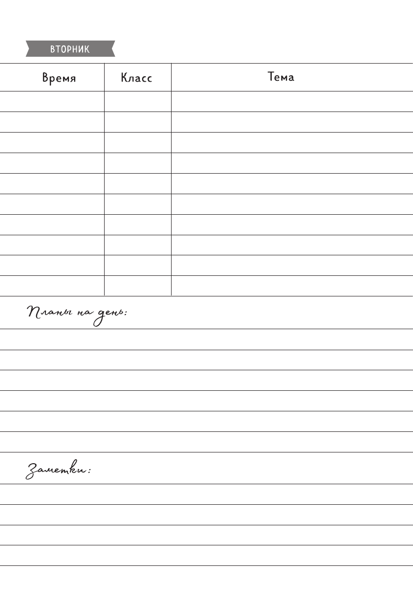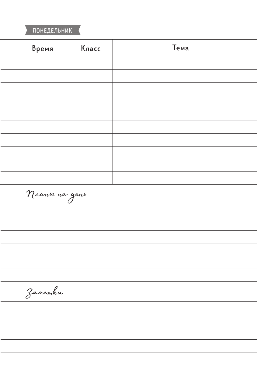 - Сетка блока создана с учетом современных тенденций европейского дизайна: часть распределена по времени — для ваших рабочих дедлайнов, а другая часть — линейки, которые можно использовать как для личных заметок, так и для планирования рабочих задач.