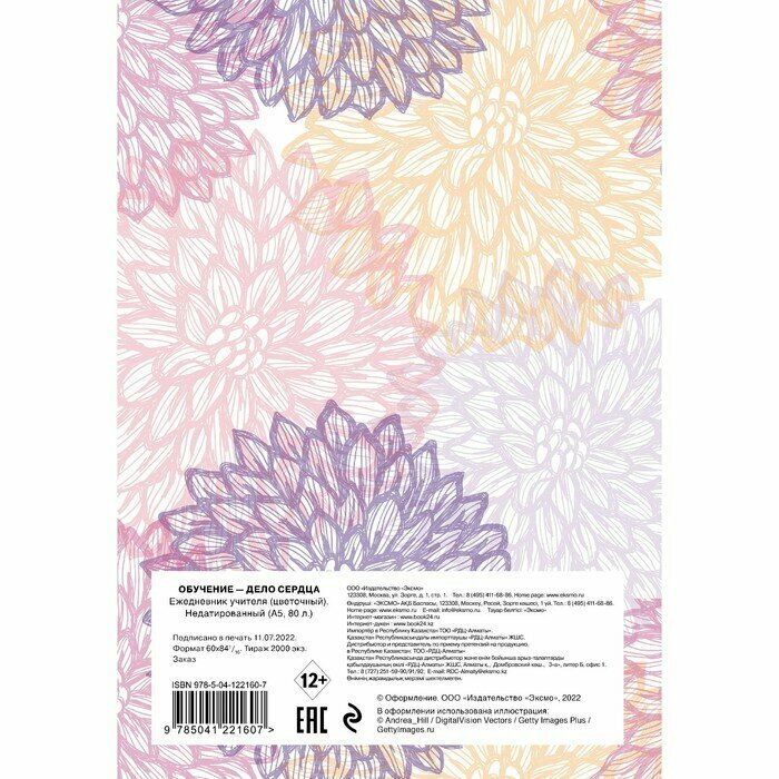Ежедневник учителя (цветочный). Обучение - дело сердца. Недатированный (А5 96 л.); ООО "Издательство "Эксмо", 2021