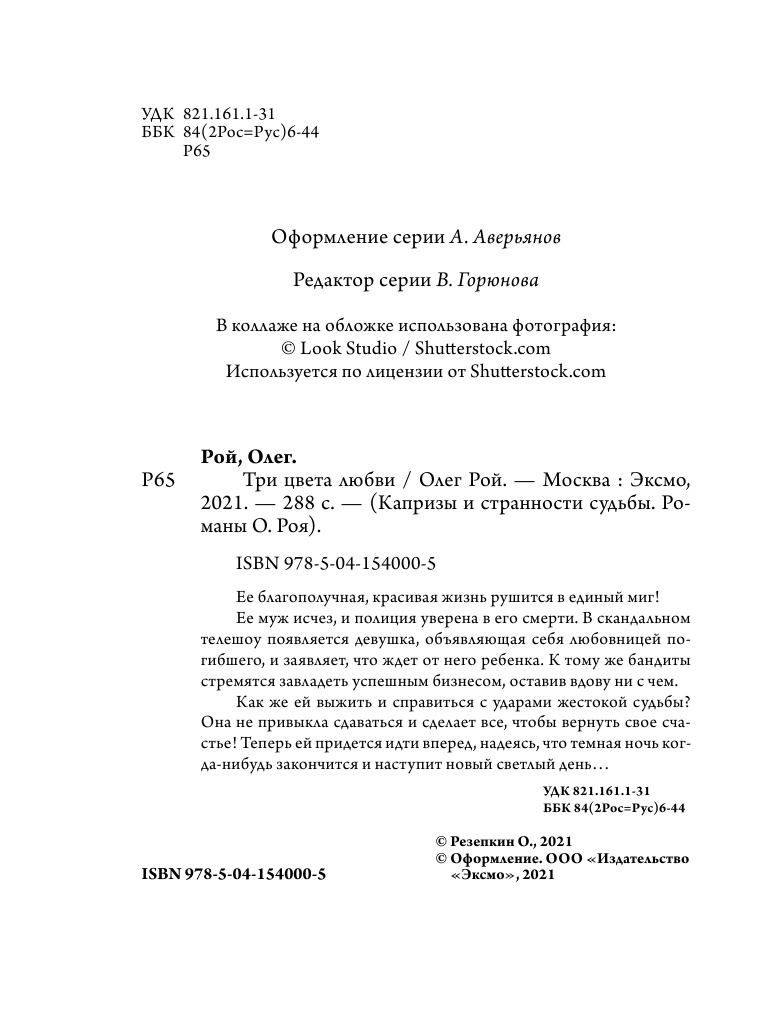 Книга: Три цвета любви (Рой Олег Юрьевич); ООО "Издательство "Эксмо", 2021