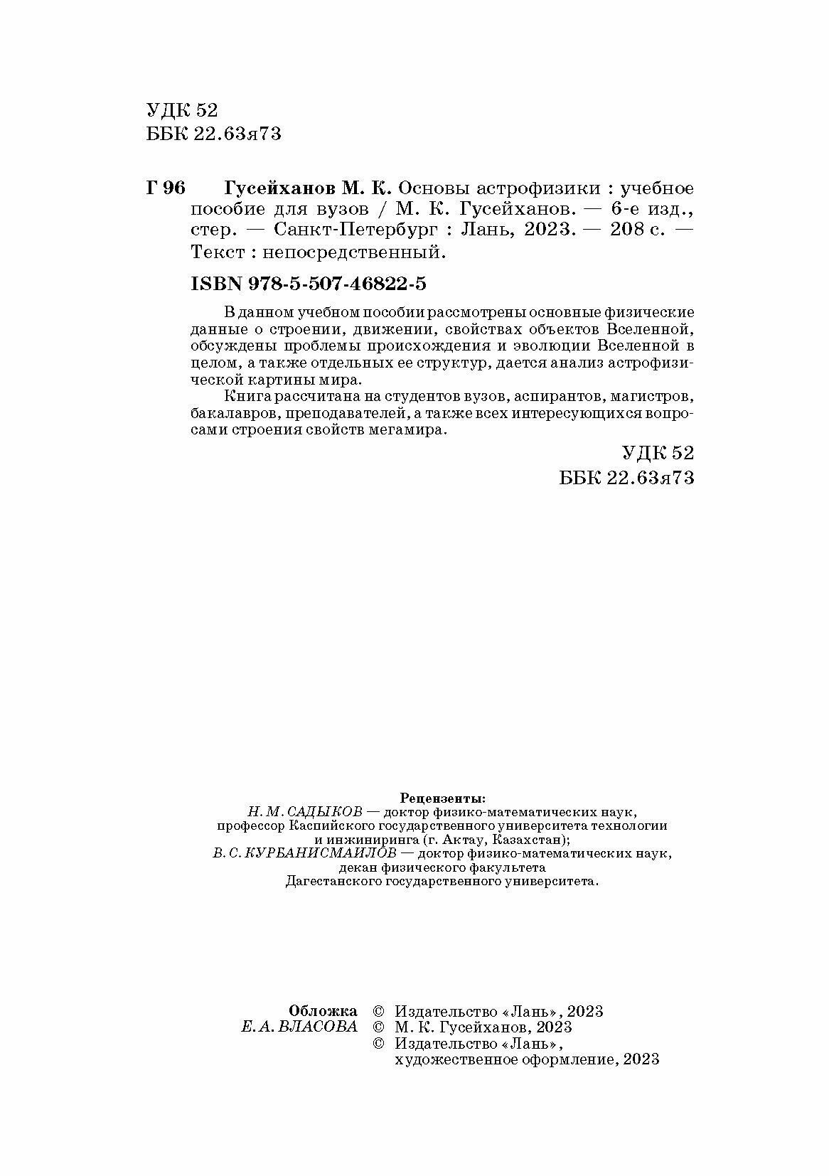 Книга: Основы астрофизики (Магомедбаг Кагирович Гусейханов); Издательство ЛАНЬ, 2023