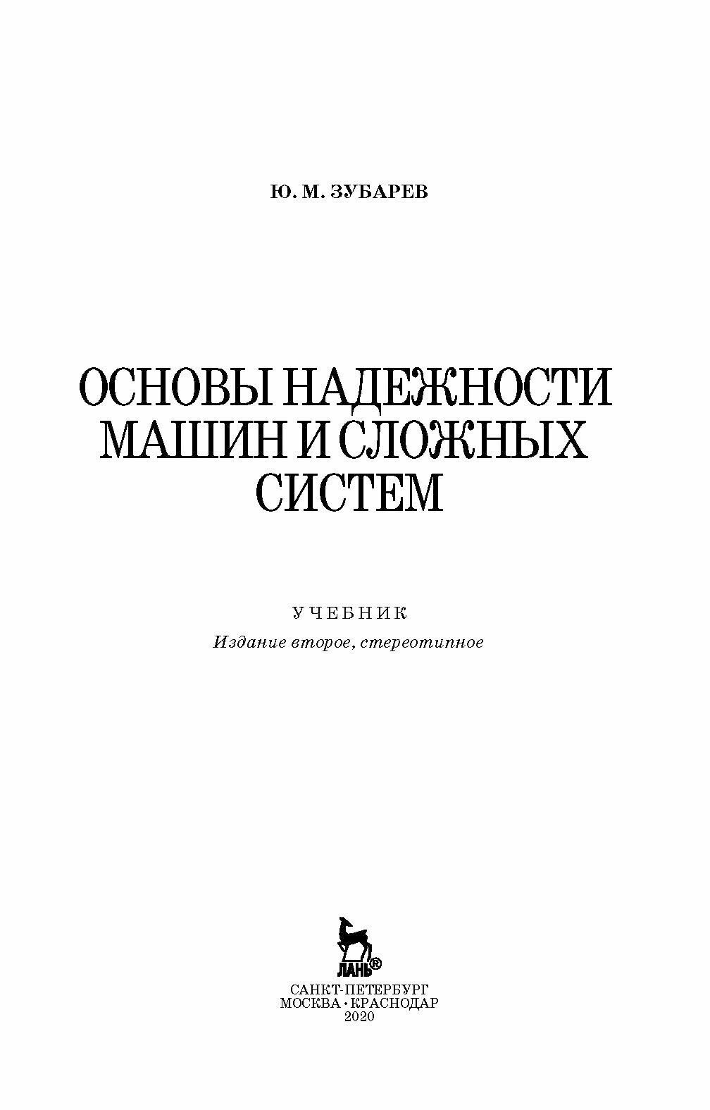 Основы надежности машин и сложных систем (Ю. М. Зубарев); Издательство ЛАНЬ, 2020