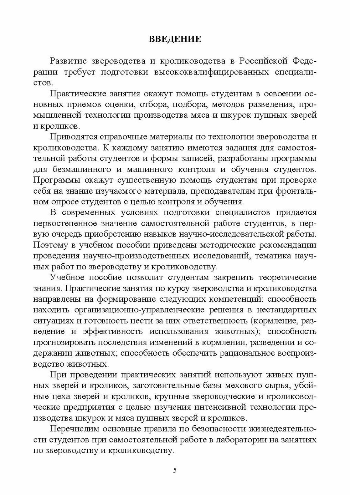 В пособии рассмотрены практические занятия по различным темам звероводства. Представлены биологические особенности, породы и типы зверей, основы стандартизации и сортировка пушно-мехового сырья, системы содержания, кормления, племенной учет, бонитировка, планирование племенной работы на перспективу. Исследованы проблемы кролиководства: биологические особенности, экстерьер и конституция, породы кроликов и генетика, убой и первичная обработка шкурки и тушки, племенная работа, системы содержания и кормления, разработка плана племенной работы с породами, технология поточного производства мяса. Учебное пособие предназначено для студентов аграрных колледжей и техникумов, обучающихся по специальностям «Зоотехния», «Технология производства и переработки сельскохозяйственной продукции», «Охотоведение и звероводство», преподавателей, специалистов предприятий различной формы собственности, занимающихся разведением пушных зверей и кроликов.