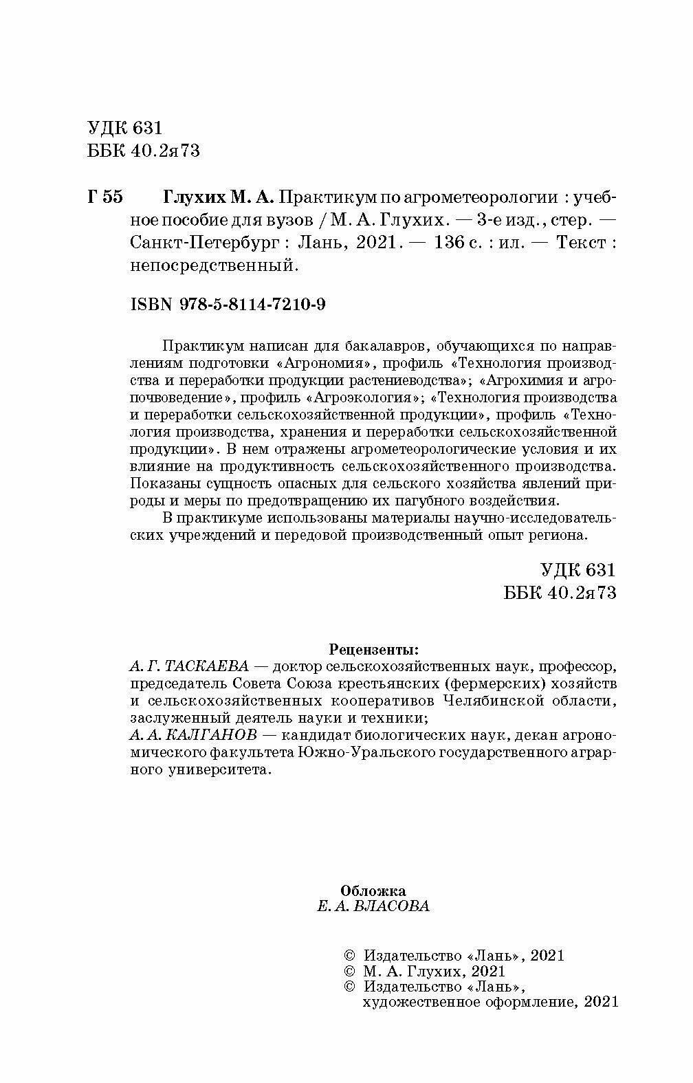 Практикум по агрометеорологии (М. А. Глухих); Издательство ЛАНЬ, 2024