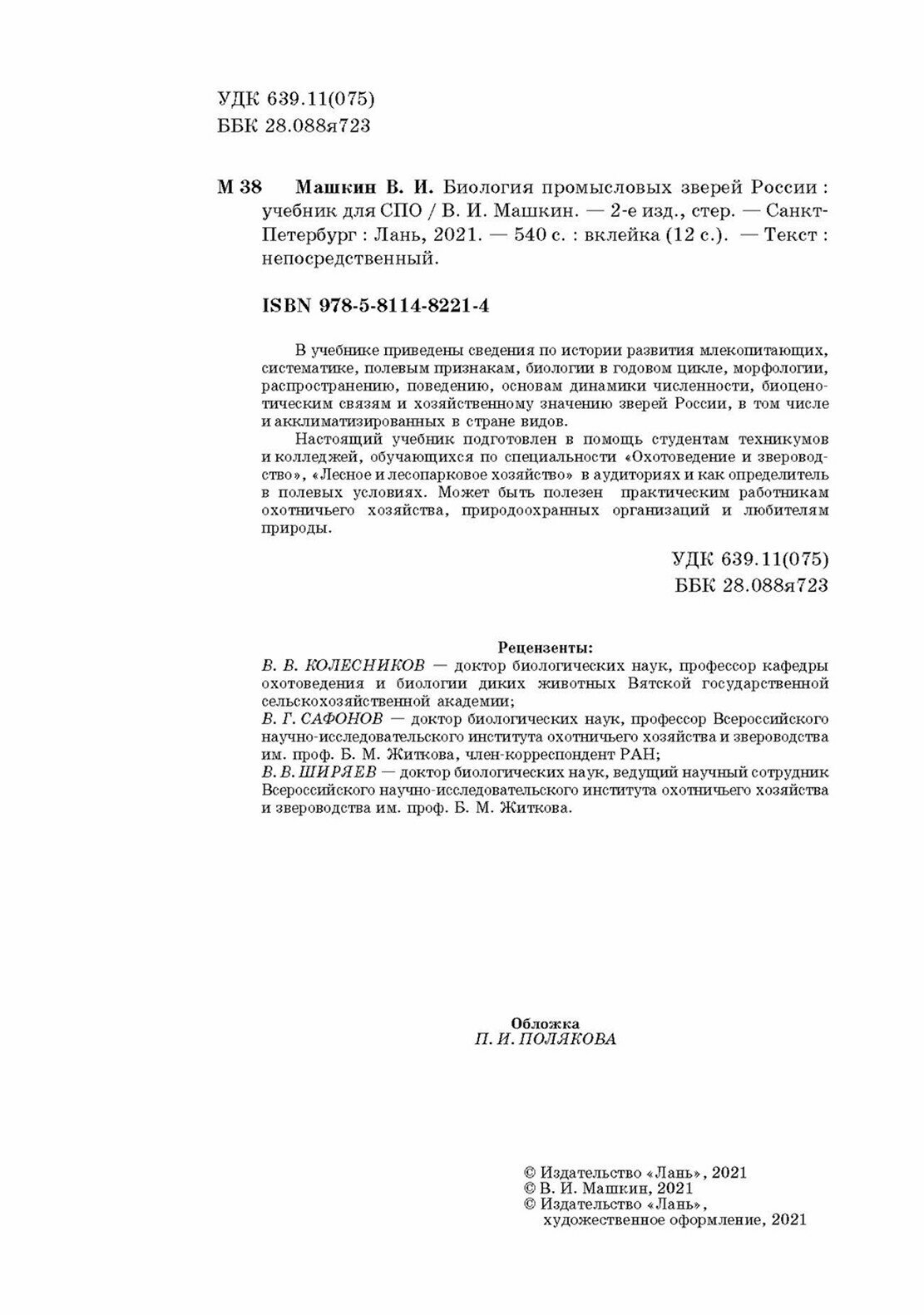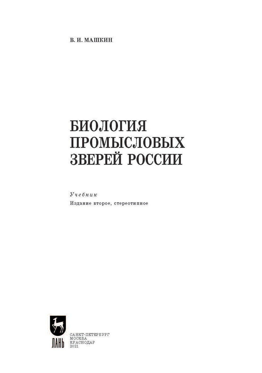 Биология промысловых зверей России (В. И. Машкин); Издательство ЛАНЬ, 2021