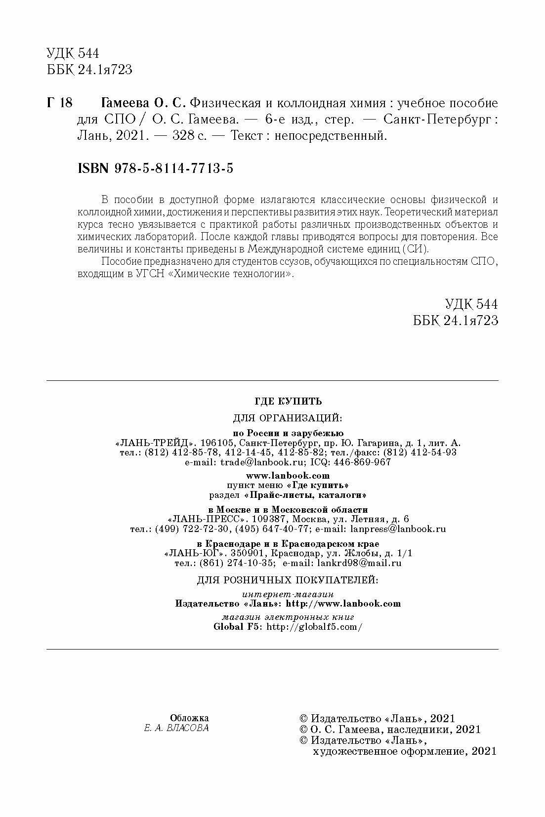 Сервис сравнения цен СкидкаГИД предлагает сравнить цены на товар «Книга: Физическая и коллоидная химия (О. С. Гамеева); Издательство ЛАНЬ, 2021»