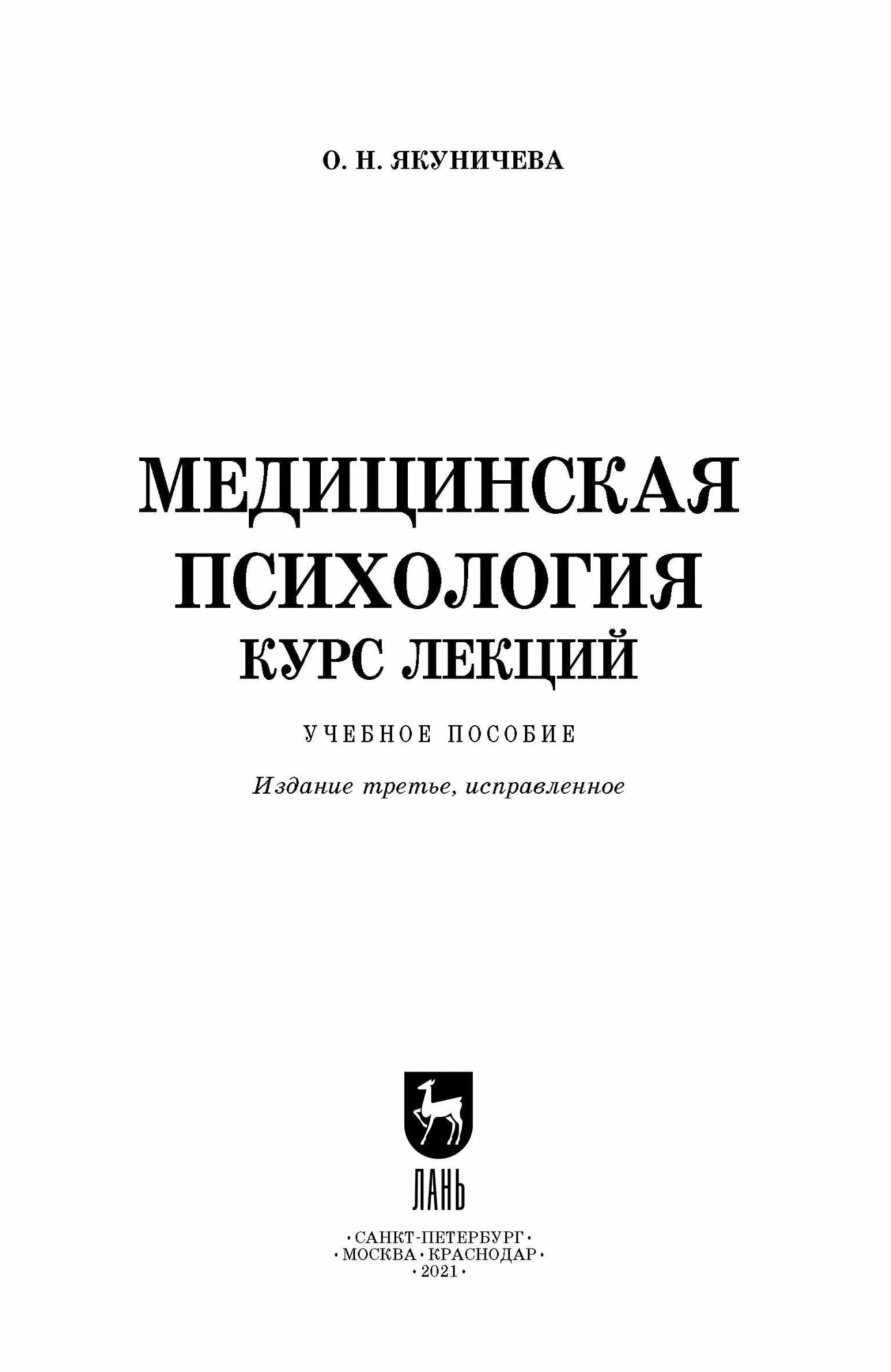 Медицинская психология. Курс лекций (О. Н. Якуничева); Издательство ЛАНЬ, 2021