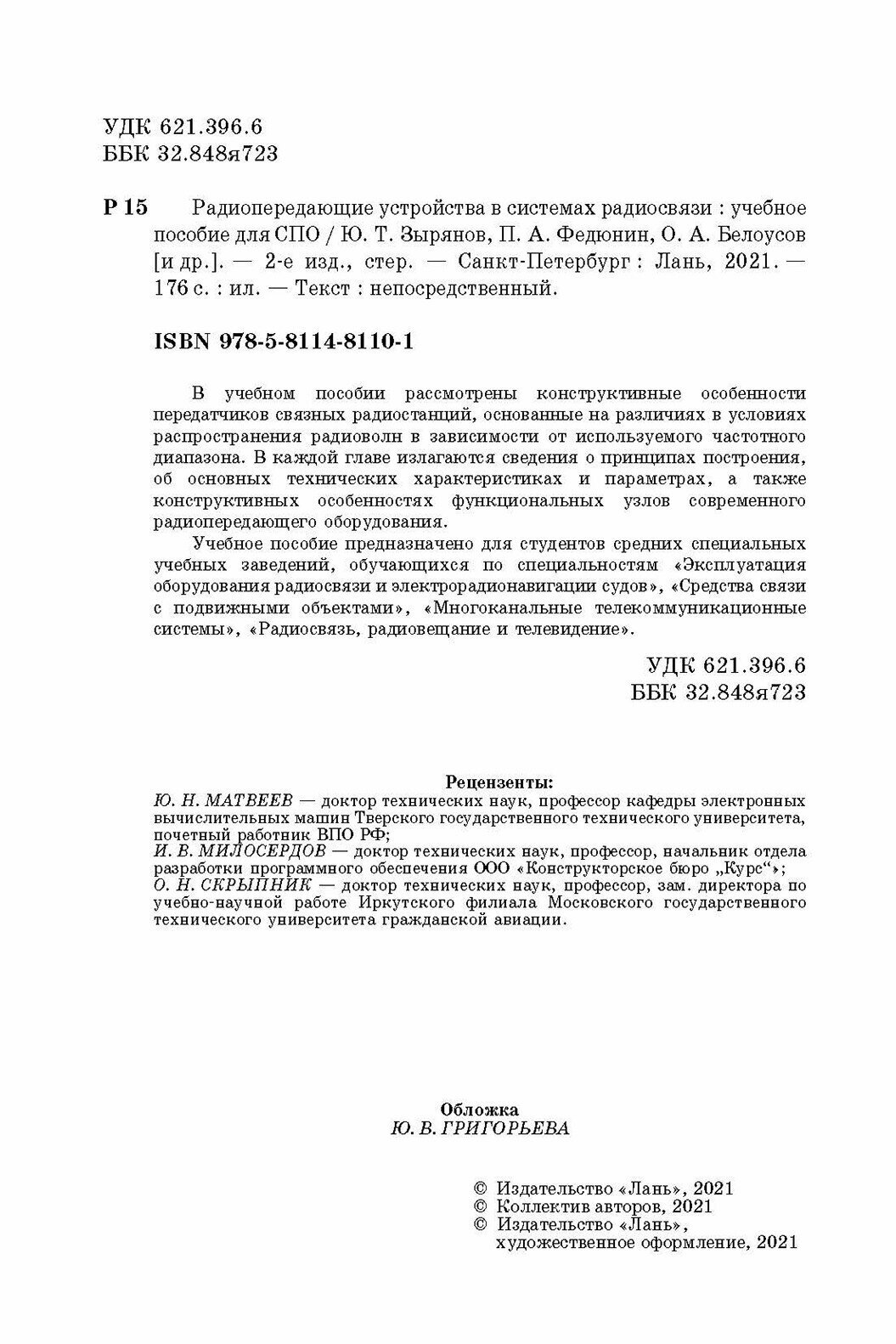 Радиопередающие устройства в системах радиосвязи (Зырянов Юрий Трифонович, Федюнин Павел Александрович, Белоусов Олег Андреевич, Рябов Александр Вячеславович, Головченко Евгений Викторович, Курносов Роман Юрьевич); Лань, 2021