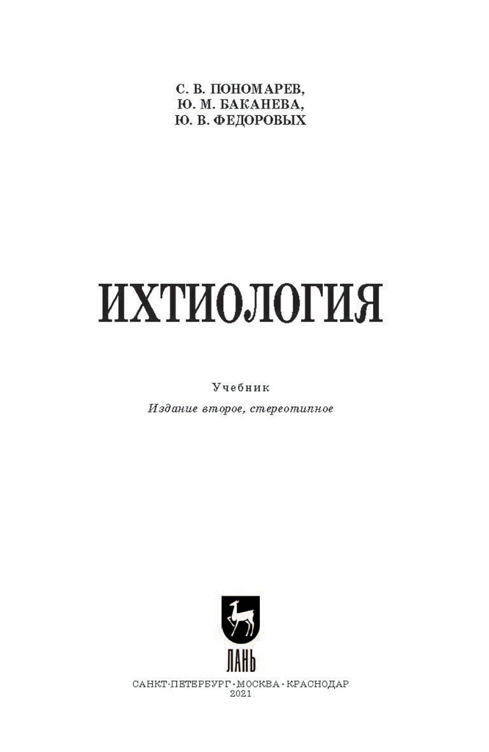 Книга: Ихтиология (С. В. Пономарев); Издательство ЛАНЬ, 2025