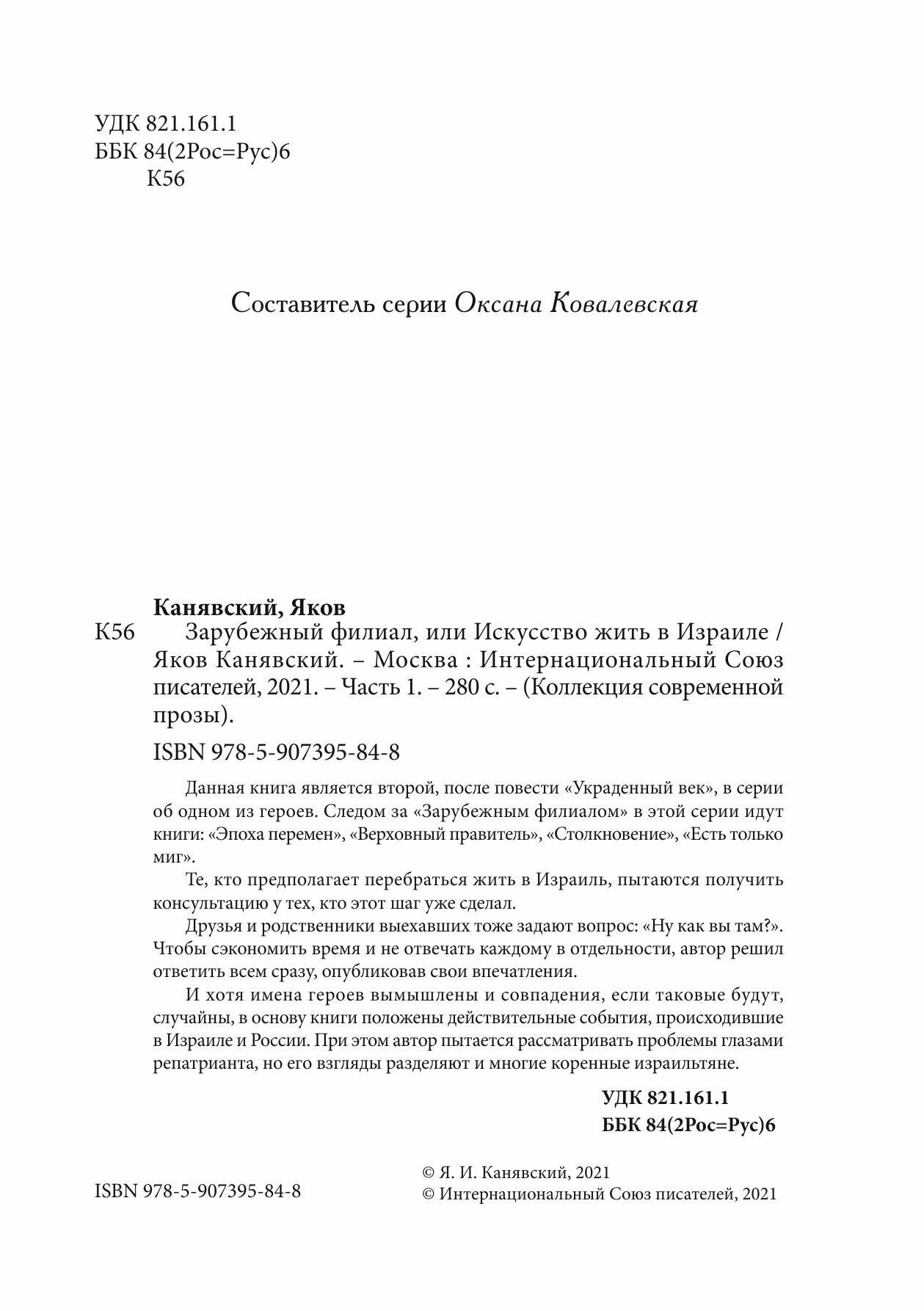 Зарубежный филиал или Искусство жить в Израиле. Часть 1 (Яков Канявский); "Издательство "Интернационального союза писателей", 2021