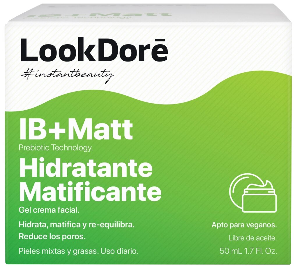 LookDore IB + Matt матирующий увлажняющий гель-крем с «пребиотической технологией» на основе микроводорослей, экстракта Fallopia Japonica и шиповника корректирует работу сальных желез и предотвращает появление недостатков воспаления, в результате чего восстанавливается жировой баланс кожи, и она приобретает матовость.