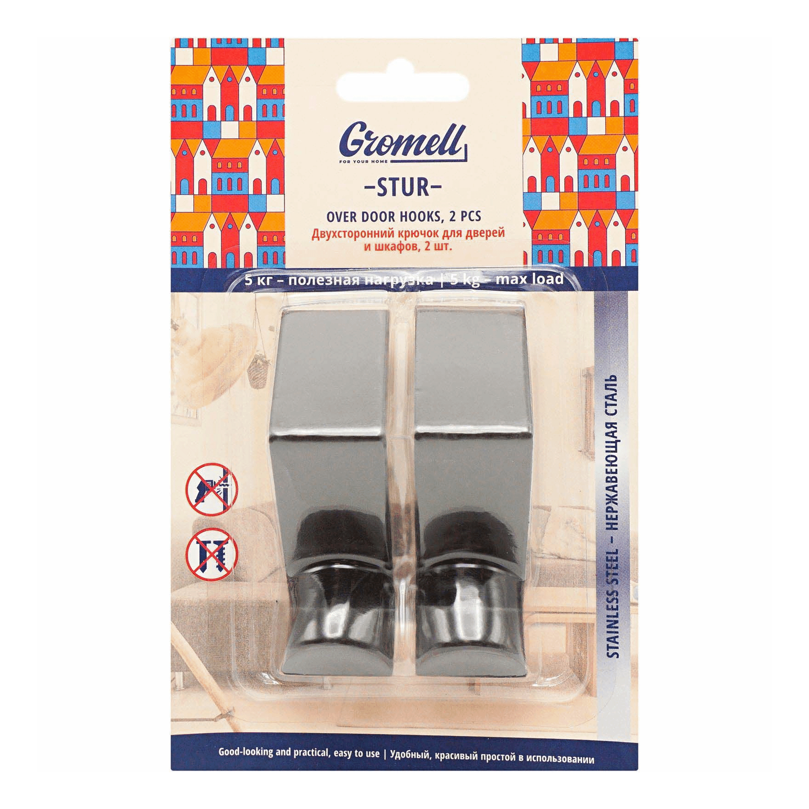 Крючок Gromell Stur для дверей и шкафов двухсторонний 2шт