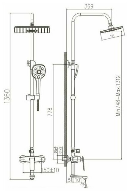 | ВКоробке | Душевая стойка - 1 шт. Верхний душ - 1 шт. Лейка - 1 шт. Шланг - 1 шт. Смеситель - 1 шт. Эксцентрик - 2 шт. Инструкция - 1 шт. |
