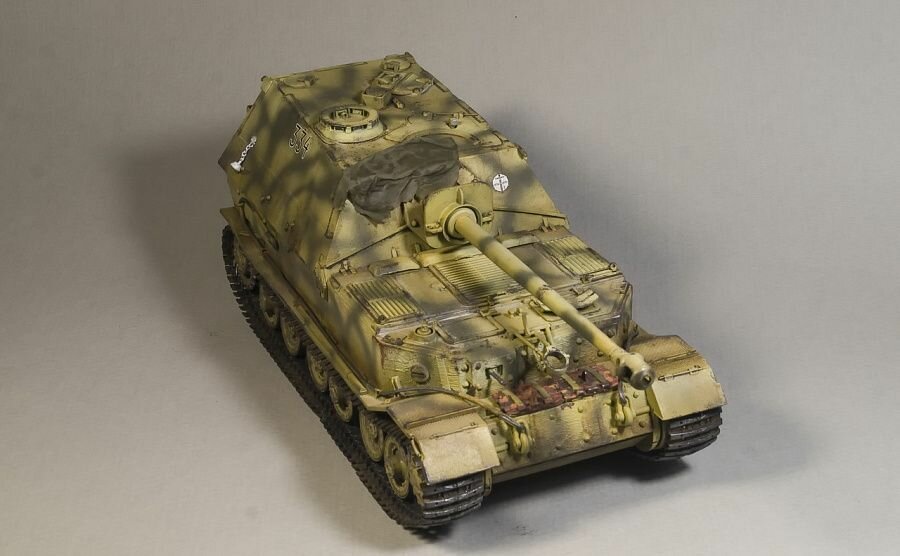 Немецкое тяжёлое штурмовое орудие "Фердинанд", без сомнения, является самым ярким и самым знаменитым представителем самоходных орудий периода Второй Мировой войны. Этот бронетанковый "бренд" известен каждому. Хотя было изготовлено всего 90 "фердинандов", 8,8 cм Pak 43/2 Sfl L/71 Panzerjager Tiger (P) Ferdinand - такое обозначение в честь своего создателя Фердинанда Порше этот истребитель танков получил по личному распоряжению Гитлера. Его имя стало нарицательным - на советско-германском фронте "фердинандами" называли любые немецкие САУ с задним расположением боевого отделения. Переименованное в "Элефант" после модернизации в феврале 1944 года, это штурмовое орудие отличилось как на Западном, так и на Восточном фронте - мощнейшая 88-мм пушка и 200-мм броня делали его смертельно опасным противником, способным поражать любую бронетехнику Союзников на дистанции свыше километра и почти неуязвимым для ответного огня.