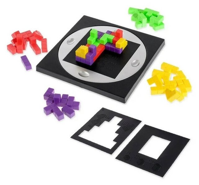 В наборе: вращающееся игровое поле, 44 детали-блока в 4 цветах, 4 маски.