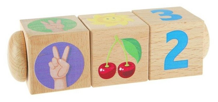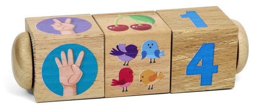 Кубики на оси направлены на развитие логики и образного мышления малышей. Поворачивая кубики, ребёнок тренирует мелкую моторику рук и учится простому счёту от 1 до 4.