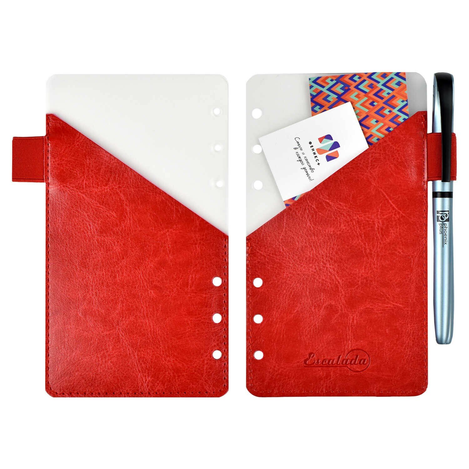 Разделитель для ежедневника (А6 пластик + карман красный) (50300) Феникс+