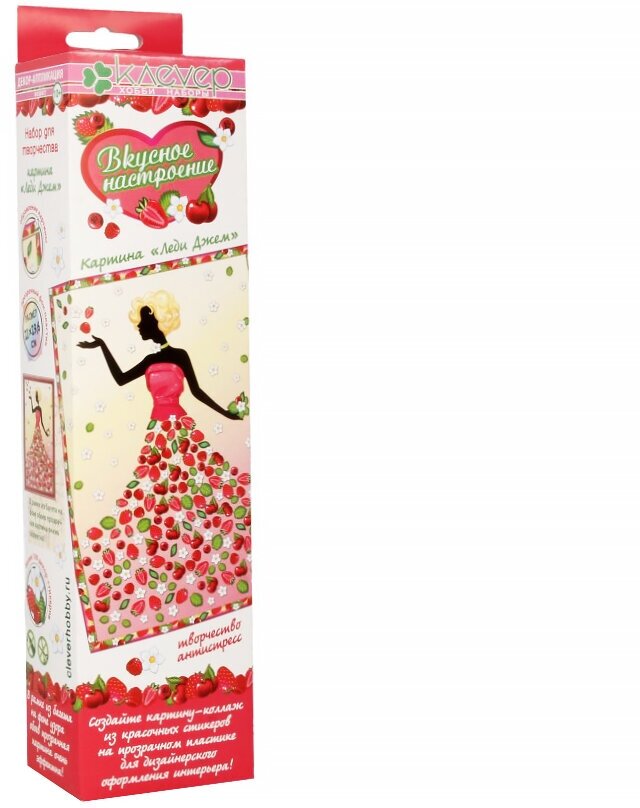 Создание картин из серии "Вкусное настроение" понравится подросткам старше 10 лет и взрослым. Изящество силуэта девушки с цветами и сочными ягодами нестандартно сочетается с яркостью "вкусных" стикеров на платье, разлетающихся в вихре радостного настроения. Картина легка в исполнении: на прозрачный пластик наклеиваются детали-самоклейки и дизайнерские стикеры. Картина будет оригинально смотреться в любом интерьере!