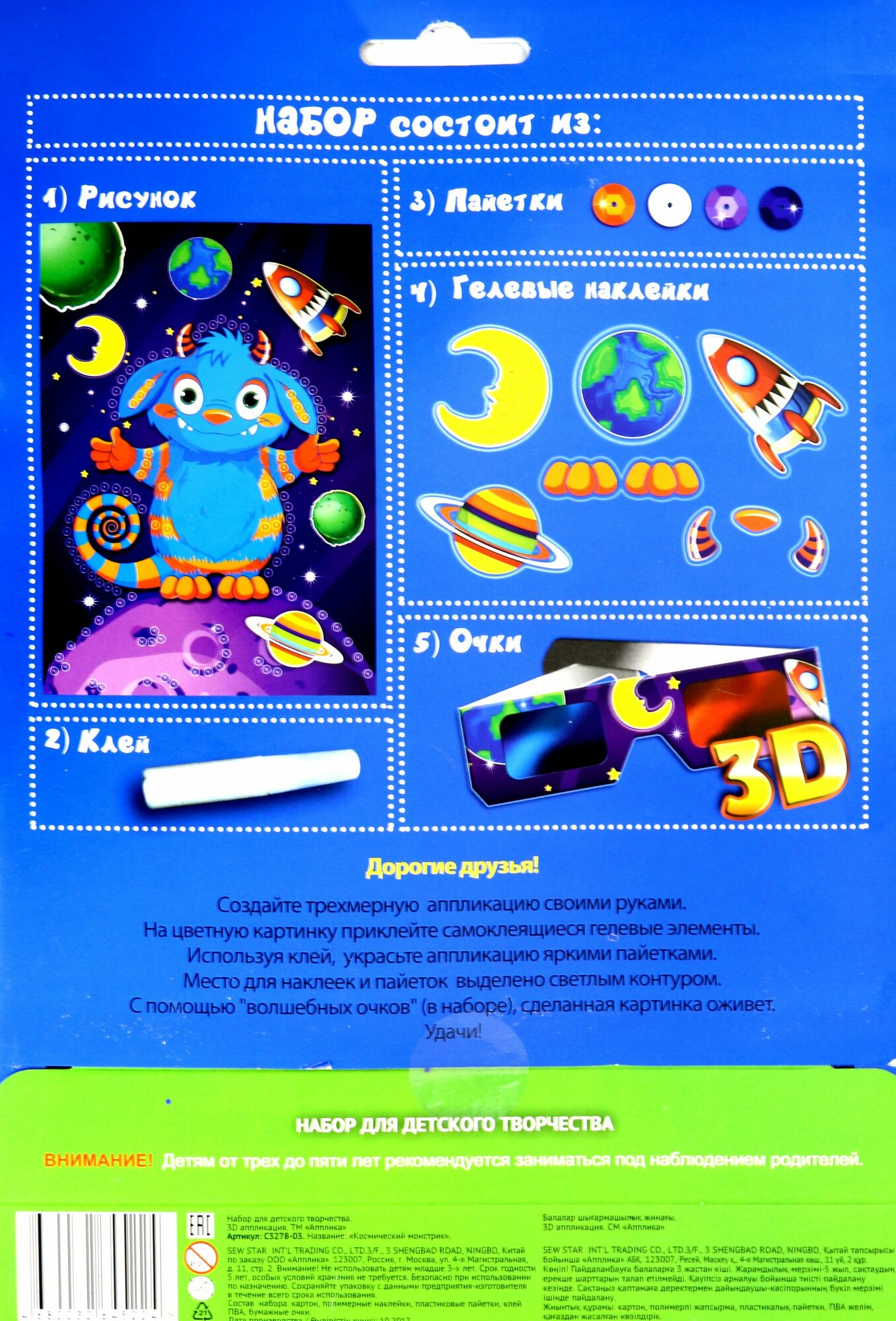 Аппликация 3D "Космический монстрик" (С3278-03)