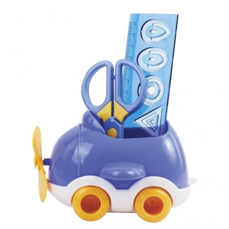 Настольный набор из высококачественного пластика в форме машины позволяет эргономично и оригинально организовать размещение канцелярских принадлежностей ребенка.