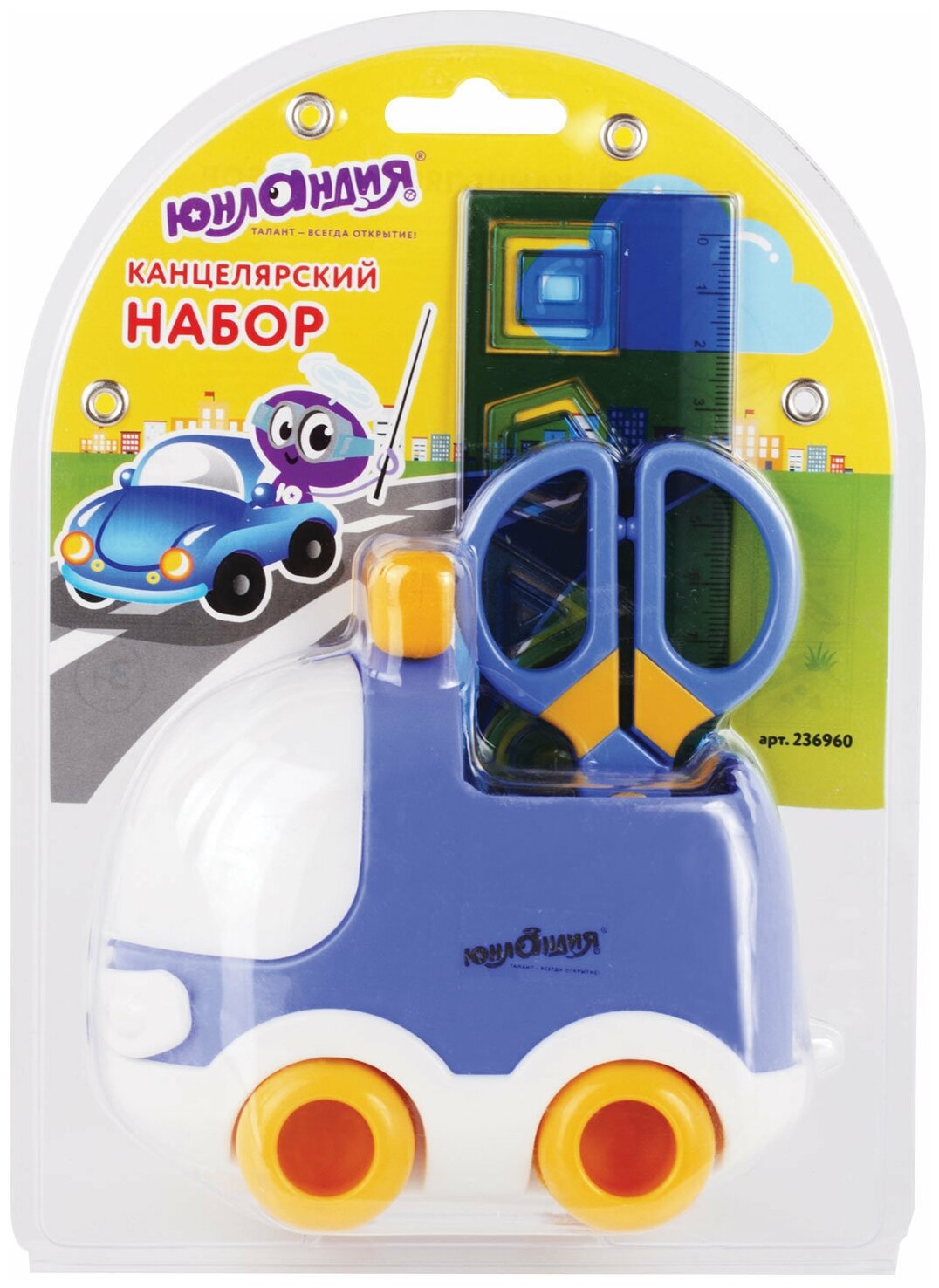 Канцелярский набор 4 предмета ЮНЛАНДИЯ "АВТОМОБИЛЬ" (236960) Brauberg