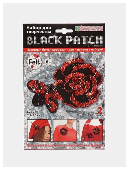 Элегантность и блеск чёрного цвета - в модной серии нашивок "Black patch"! Готовые силуэты розы и божьей коровки позволяют создать дизайнерский комплект украшений-патчей в единой цветовой и стилистической гамме. Украсьте любимую кофточку, сумочку или головной убор!