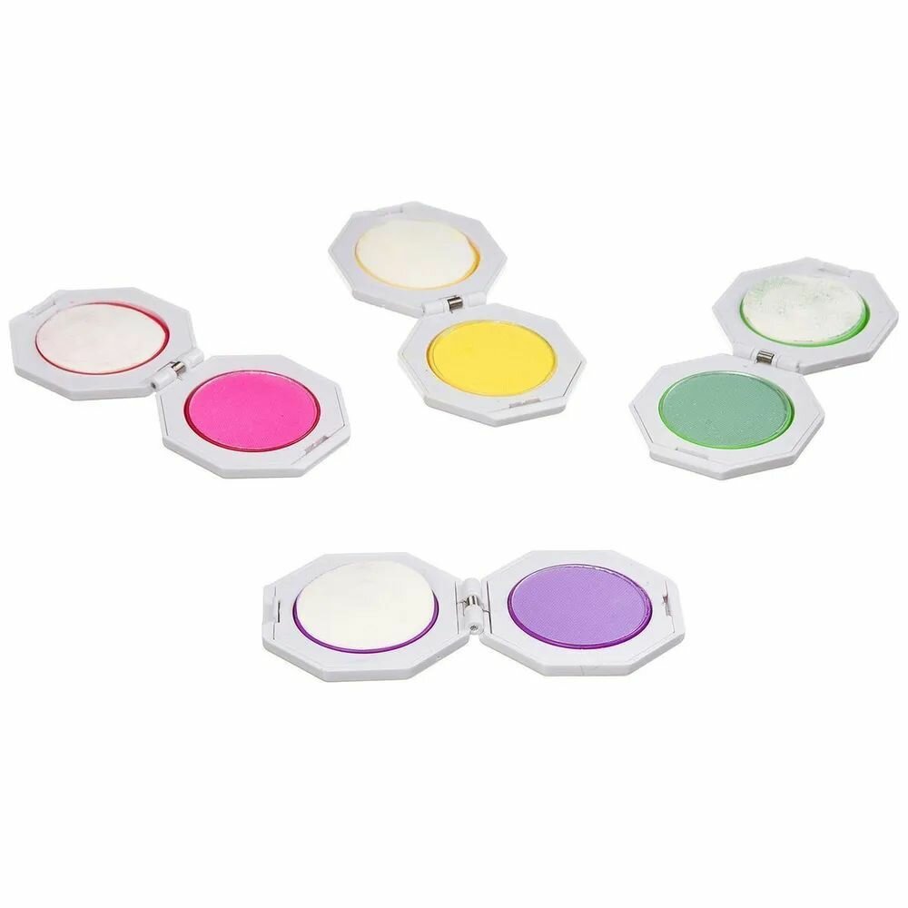 Состав набора: 4 футля со спонжем и колорирующей пудрой (мелом) для волос, 4 оттенка: желтый, зеленый, малиновый, фиолетовый.