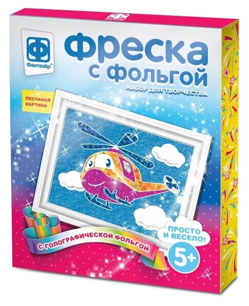 Фреска из фольги, блёсток и песка - увлекательный вид творчества, который понравится любому малышу. И если с песком и блёстками все знают как работать, то фольга - это новый материал. Работать с ним легко - отдели защитный слой с одной детали картинки и заполни его фольгой. Важно! Фольгу нужно прикладывать на клеевую основу серой стороной. Затем заполняем другие детали песком и украшаем блёстками, и шедевр готов! Фреска развивает у ребёнка логическое мышление, чувство прекрасного, усидчивость, абстрактное и логическое мышление, сообразительность, мелкую моторику и координацию движений. Фреску, созданную своими руками, ребёнок подарит друзьям, близким или украсит ей детскую комнату.