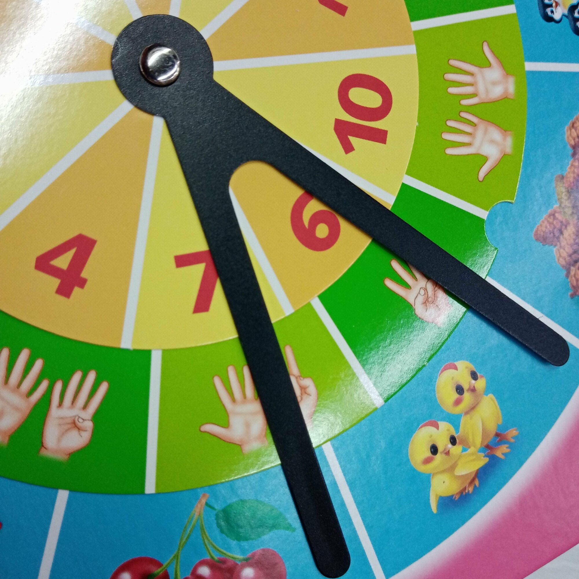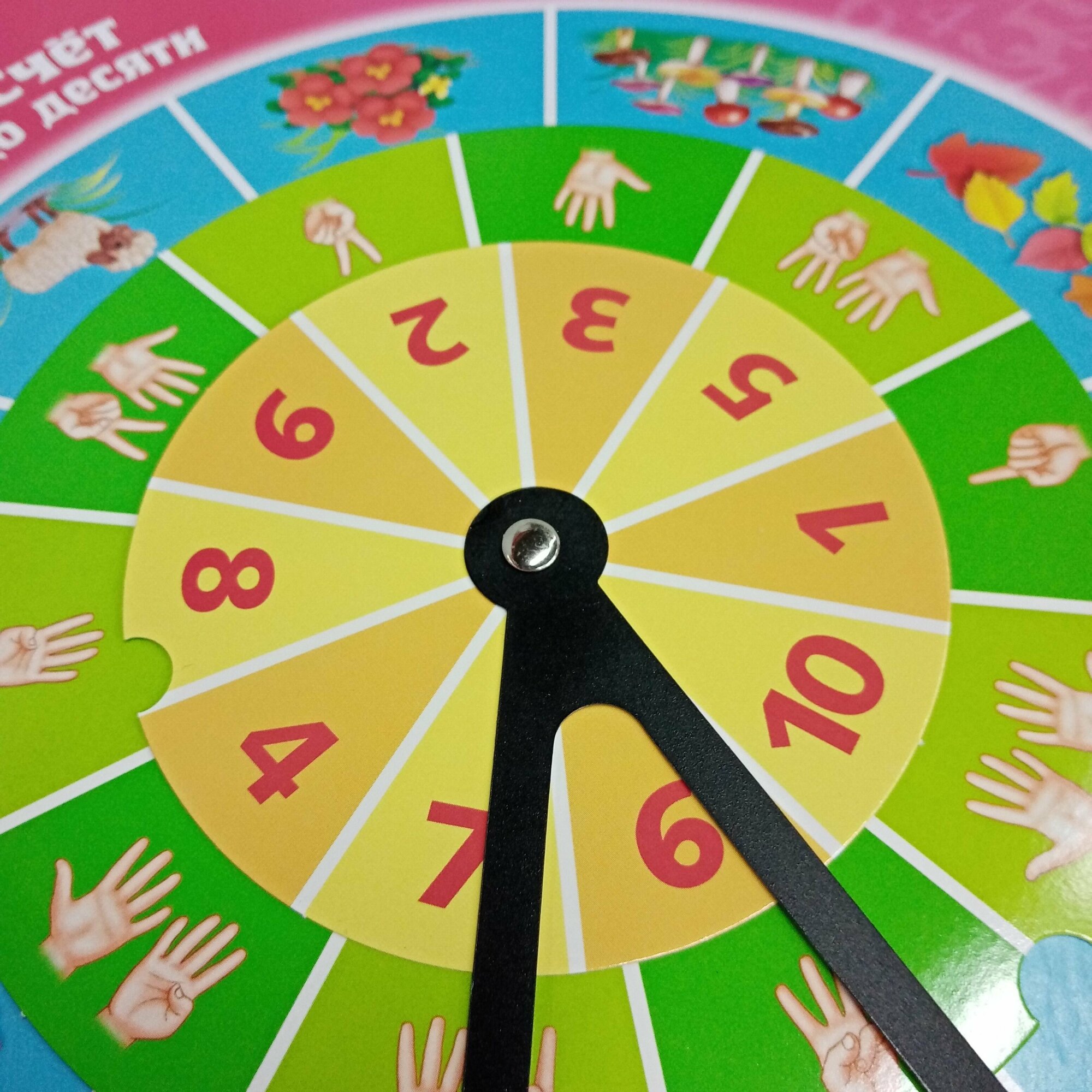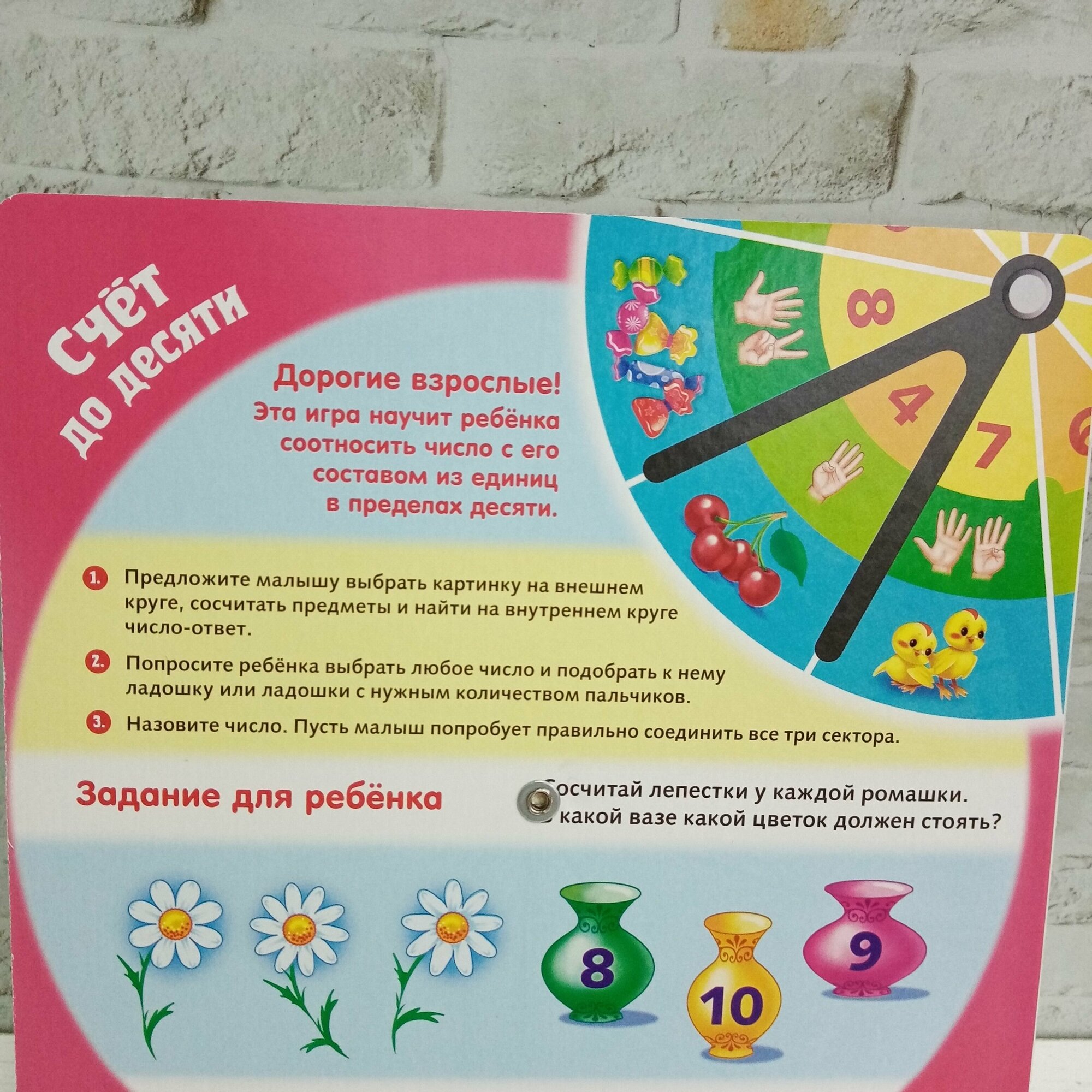 1. Предложите малышу выбрать картинку на внешнем круге, сосчитать предметы и найти на внутреннем круге число-ответ.