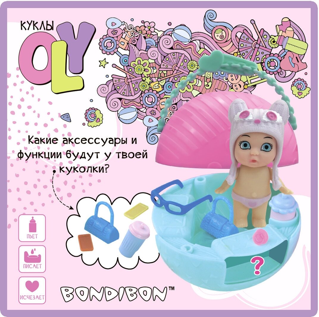 Кукла всегда была самым приятным подарком для девочки! Поэтому Bondibon представляет ХИТ СЕЗОНА - линейку кукол OLY! OLY - это разнообразные очаровательные куколки, у каждой из которых есть свой набор оригинальных аксессуаров, а также особенные функции, наличие и разнообразие которых варьируется от одной куколки к другой. Например, одна куколка пьет, другая пьет и писает, а третья реагирует на влагу! У куколки двигаются ручки, снимается шапочка в виде забавного животного. На неё можно примерить все аксессуары из любого набора OLY. Необычный сундучок-шар станет дополнительным аксессуаром для игры. Он может быть как подставкой для куколки, так и местом хранения аксессуаров. А еще его очень интересно распаковывать! В нем можно найти и наклейки, и сосочку, и очки или сумочку, а также любые другие аксессуары, а какие именно - это сюрприз!